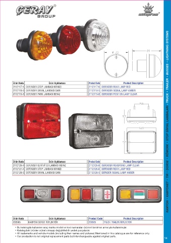 • Katalogdaki ürünler orjinal olmayıp değiştirilebilir yedek parçalardır.