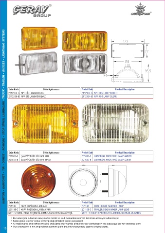 KAMYON • KAMYONET • TIR • DORSE • RÖMORK • STOP SİNYAL LAMBALARI - TRUCK • TRAILER • BUSSES • LIGHTNING SYSTEMS