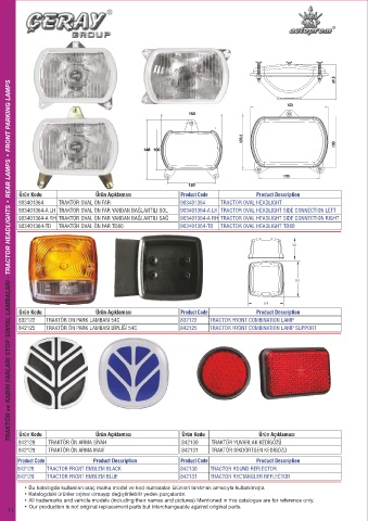 TRAKTÖR ve KABİN FARLARI STOP SİNYAL LAMBALARI - TRACTOR HEADLIGHTS • REAR LAMPS • FRONT PARKING LAMPS