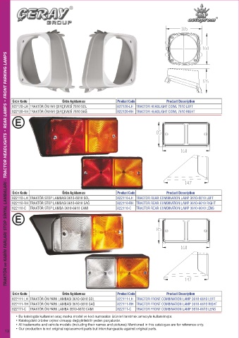 TRAKTÖR ve KABİN FARLARI STOP SİNYAL LAMBALARI - TRACTOR HEADLIGHTS • REAR LAMPS • FRONT PARKING LAMPS