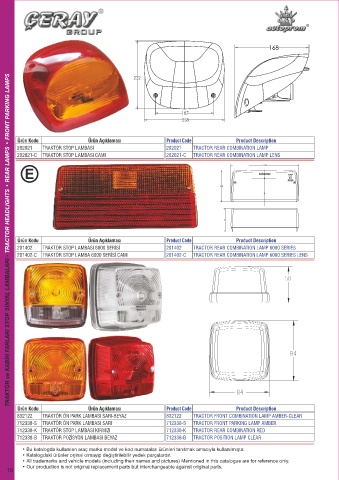 TRAKTÖR ve KABİN FARLARI STOP SİNYAL LAMBALARI - TRACTOR HEADLIGHTS • REAR LAMPS • FRONT PARKING LAMPS