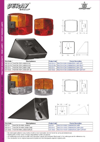 TRAKTÖR ve KABİN FARLARI STOP SİNYAL LAMBALARI - TRACTOR HEADLIGHTS • REAR LAMPS • FRONT PARKING LAMPS