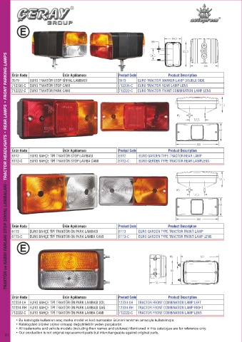 TRAKTÖR ve KABİN FARLARI STOP SİNYAL LAMBALARI - TRACTOR HEADLIGHTS • REAR LAMPS • FRONT PARKING LAMPS